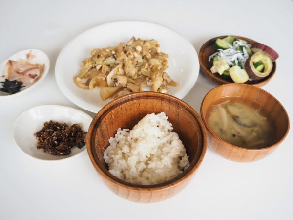 とった出汁できのこたっぷりのみそ汁を作り、