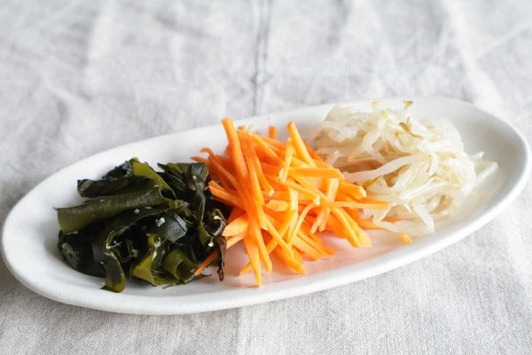 1日目は、にんじん、さといも、わかめを使った常備菜。