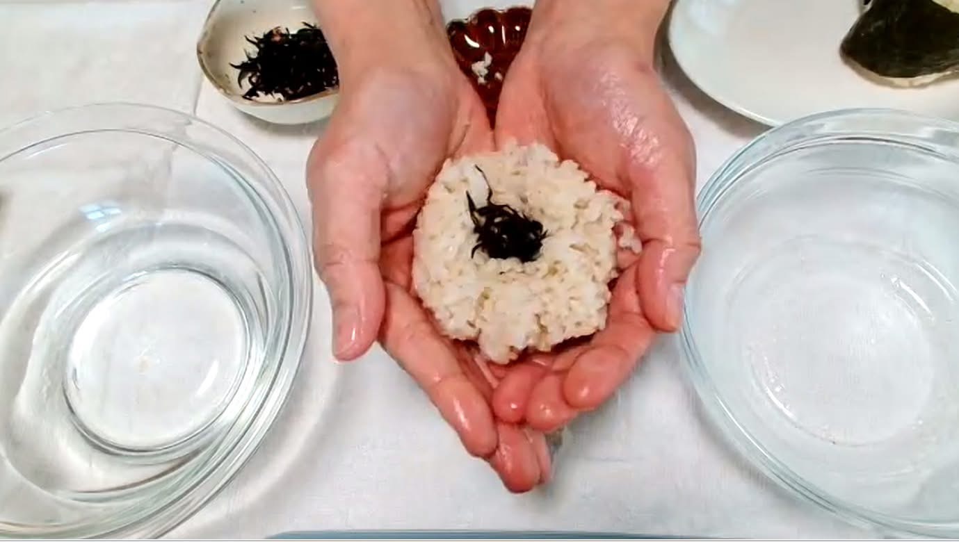 「お・に・ぎ・り」と言いながら、ていねい握ってくださり